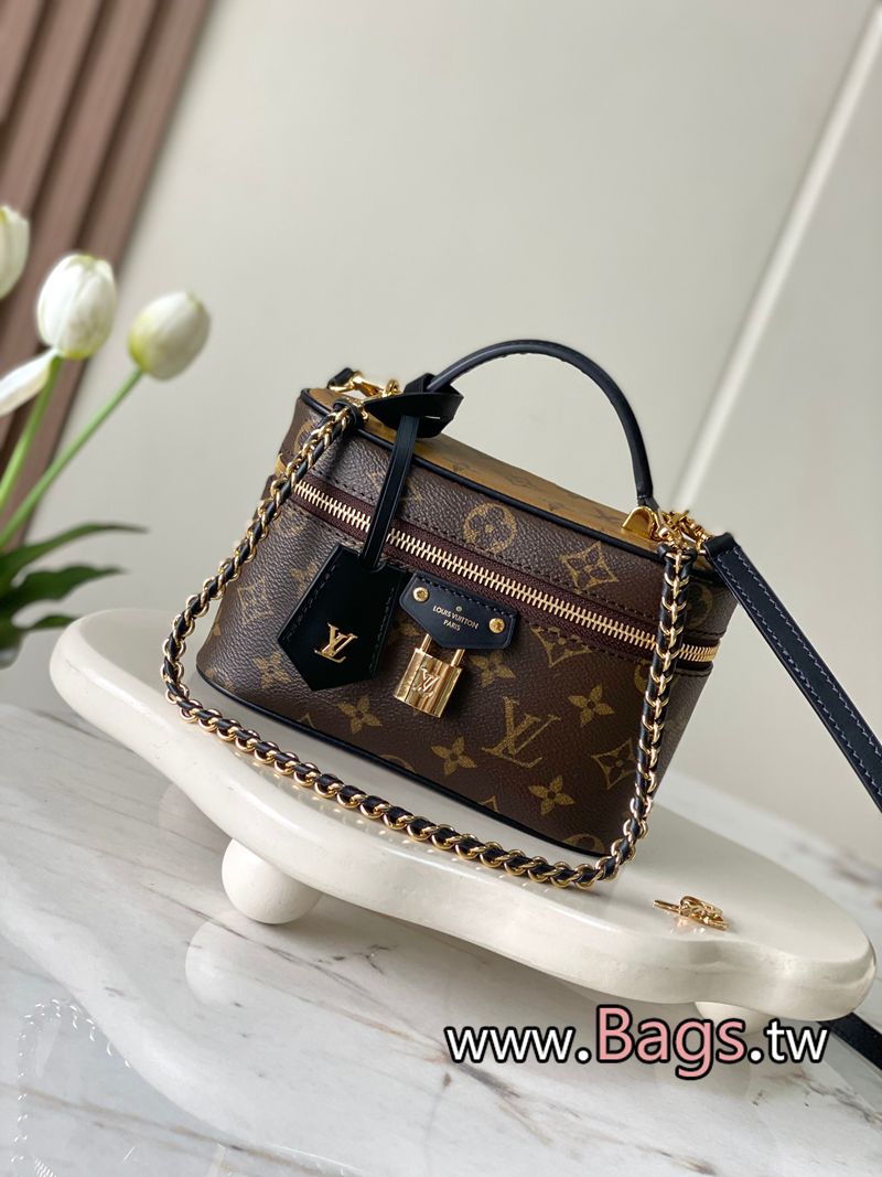 高仿包包LV(動態芯片版)原單加強版,半鋼五金 VANITY CHAIN POUCH 手袋M47125老花Vanity Chain Pouch 手袋向經典化妝箱汲取靈感 以 Monogram 帆佈詮釋旅行精神 頂部手柄和可拆卸編織鏈條融入皮革元素 與包身的簡明線條相互映襯 L*銘紋掛鎖和皮革鑰匙包延續標志性細節 size:19×11.5×6.5cmQ1450