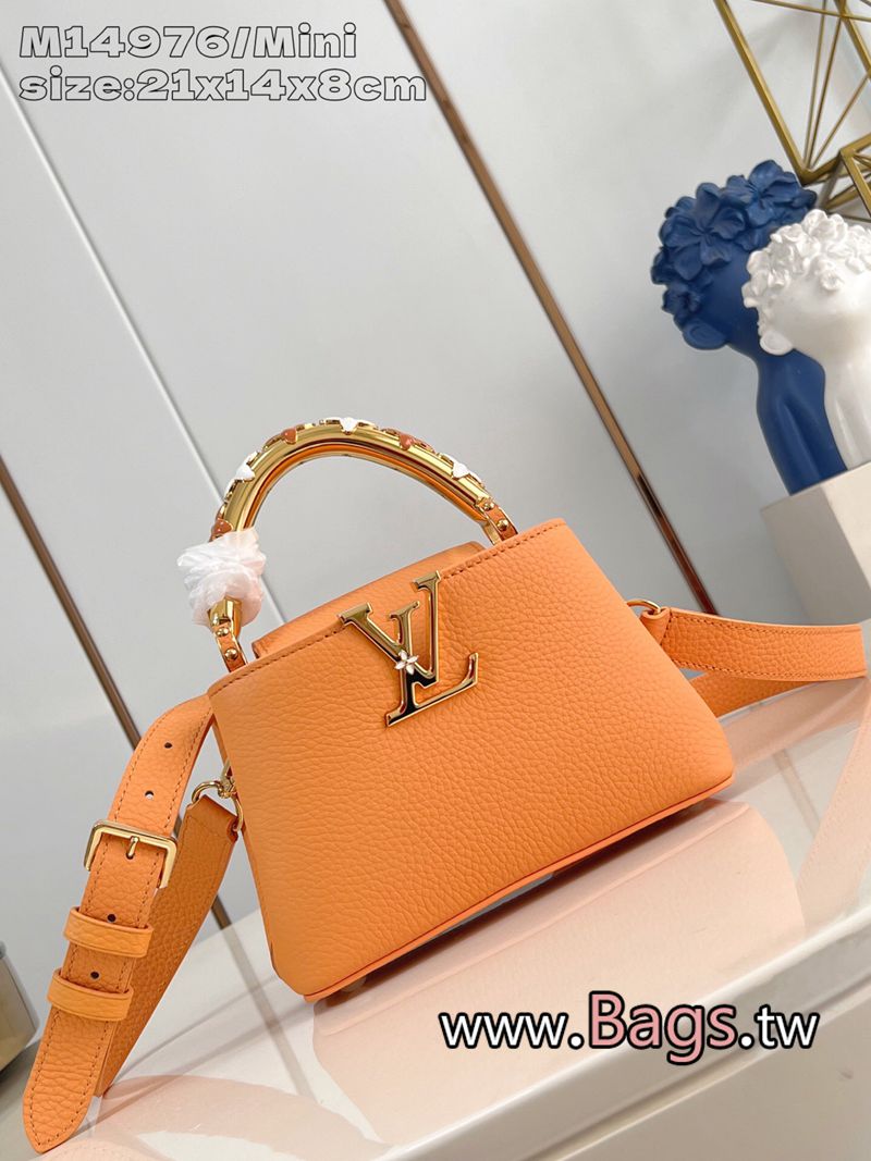 頂級高仿LVM14976土黃迷你 這款Ivy系列的Capucines 迷你綴有手繪琺瑯花卉圖案裝飾,營造浪漫風格的氛圍。包包以Taurillon皮革製造,綴有金色的LV Initials標誌向品牌的精湛工藝致敬。這款包包尺寸小巧,適合存放日常必需品,可呈現兩種風格的造型,具有間隔分明的內層,可作多種不同的攜帶方式。21 x 13.6 x 8 厘米JQ2550