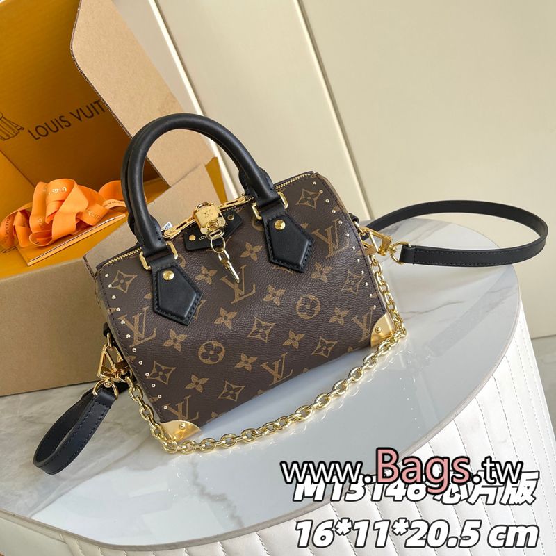 超A版本LV【變碼芯片版】款號: M13146 原單加強版【獨傢實拍背景圖】這款經典的Speedy Trunk以出眾的嶄新格調重新演繹,於2025初春系列時裝展亮相。袋款綴有精緻金色飾面的傳統硬箱細節,選用品牌Monogram帆佈打造,並配以對比鮮明的Monogram Reverse飾邊,完美呈現Nicolas Ghesquière的標誌性設計。袋款設有可拆式肩帶及鏈帶,可作斜背、肩背或手提攜帶。20.5 x 16 x 11 厘米(長度 x 高度 x 闊度)Q1490