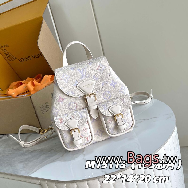 LV路易威登【163C01 芯片版】 款號: M15113 頭層皮 原單加強版【獨傢實拍背景圖】本款 Backup 雙肩包出自 Dream 系列,為 Monogram 壓紋粒面皮革渲染別致水彩漸變效果,搭配編織鏈條和瑩澤金屬件。翻蓋前袋融入磁扣開合,可穩妥收納小件物品。22 x 14 x 20 厘米(高 x 寬 x 長度)Q1650