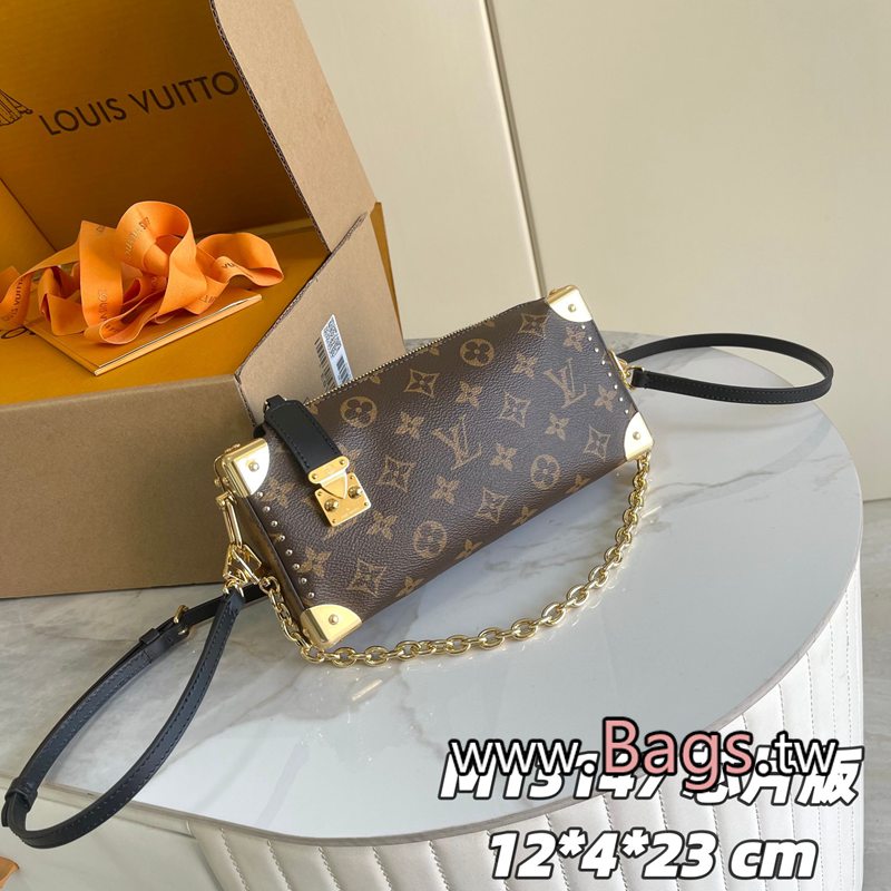 A貨之傢LV【變碼芯片版】款號: M13147 原單加強版【獨傢實拍背景圖】Slim Trunk 手袋以優雅之姿亮相 2025 Cruise 早春秀場,為經典 Trunk 手袋系列再添新成員。Monogram 帆佈、Monogram Reverse 帆佈和光滑牛皮革飾邊巧妙融合,彰顯 Nicolas Ghesquière 的標志性筆觸,S-lock 鎖扣和金屬鉚釘致敬 Trunk 系列的悠久傳統。12 x 4 x 23 厘米(高 x 寬 x 長度)Q1490
