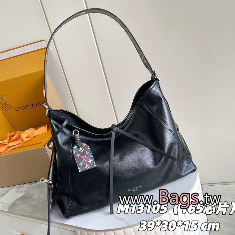 A貨LV路易威登【163C01 芯片版】款號: M13105, 原單加強版【獨傢實拍背景圖】✨CarryAll Dark 手袋以柔軟羊皮革塑造時尚慵懶廓形,為 2025年聯名村上隆三十三彩春夏秀場造型增添矚目姿彩。拋光金屬件與觸感良好的微皺紋理互為映襯。充裕空間可容納多樣日常用品(長度 x 高 x 寬)黑彩小袋芯片版原廠皮定制本款 CarryAll Dark 中號手袋尺寸:39.0 x 30.0 x 15.0 cmQ1880