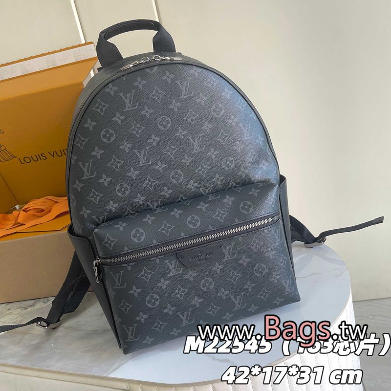 LV【163C01 芯片版】 款號: M22545 原單加強版【獨傢實拍背景圖】✨本款 Discovery 中號雙肩包以 Monogram Eclipse 帆佈和金屬件彰顯俊逸風范。前袋方便取放隨行物品,內袋和雙拉鏈開合確保收納穩妥有序,可調節織物肩帶實現舒適背攜。42 x 17 x 31 厘米(高 x 寬 x 長度)Q1490