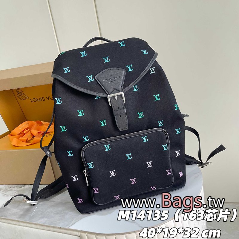 超3ALV【163C01 芯片版】 款號: M14135, 原單加強版【獨傢實拍背景圖】本款 Montsouris 雙肩包取材水洗 LV Blason 丹寧,以深邃色調烘托漸變效果 LV 字母,展現 Pharrell Williams 將曼妙音樂轉譯為時尚語言的創意巧思。拉鏈前袋方便取放日常物品,抽繩開合和磁扣系帶開啟充裕空間。40 x 19 x 32 厘米(高 x 寬 x 長度)Q1690
