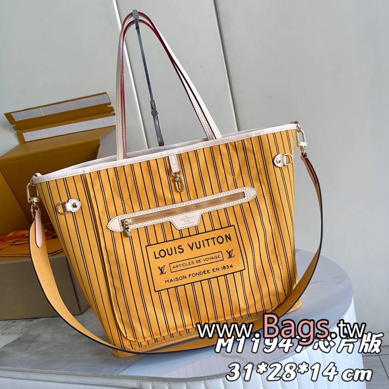 A貨LV【變碼芯片版】款號: M11947 黃色 原單加強版【獨傢實拍背景圖】 雙面可用 極具傳奇色彩的Neverfull中號手袋: 總是能夠滿足您對手提包的各種需要。 容量大卻不顯笨重,挺括而手感柔軟,居傢出行皆宜。 束緊側邊系帶,立刻變身為一款時尚的都市手袋。 松開系帶,又變成一款別致而實用的手提包。 細長的皮革手柄既宜肩背,亦可挽拎於臂間。 此處顯示的此款以 Damier Azur 帆佈制成。尺寸: 31x28x14cm,M40995 M12256 M11947 M12096 M12257 M13753Q1490