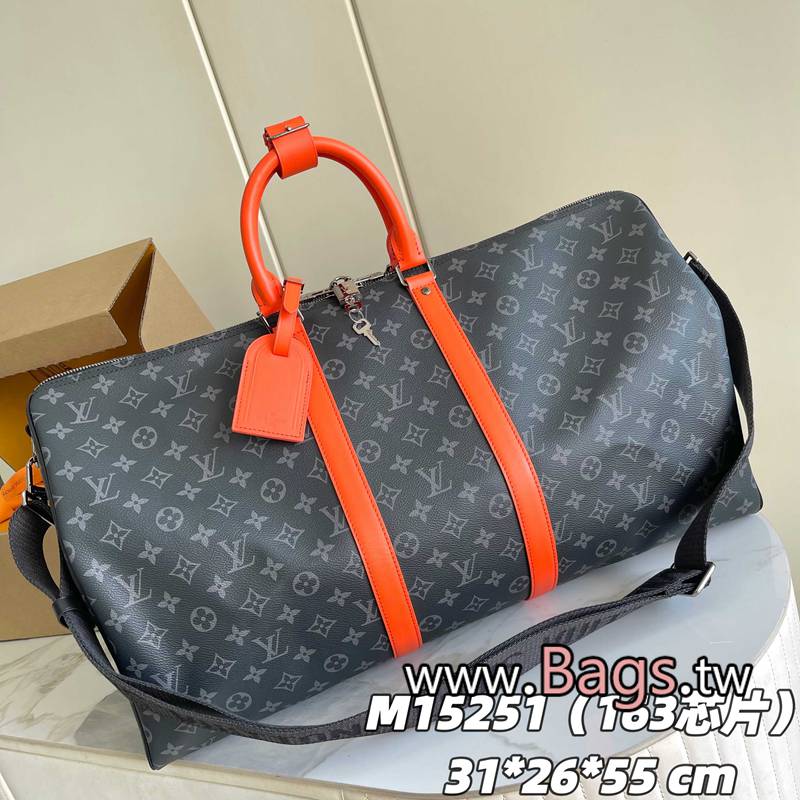 頂級a貨LV【163C01芯片版】(55cm) 款號: M15251 橙色 原單加強版【獨傢實拍背景圖】本款 Keepall Bandoulière 55 旅行袋取材 Monogram Eclipse 帆佈,以明麗側帶和頂部手柄註入動感氣息。緊湊構型搭配織物內襯和拉鏈口袋,實現便捷隨行體驗。可拆卸並調節的肩帶提供肩背或斜挎選擇。31 × 26 × 55 厘米(高 x 寬 x 長度)Q1690