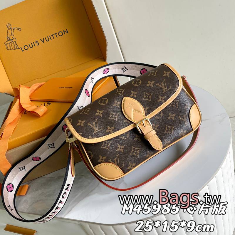 超3A高仿LV【變碼芯片版】 款號: M45985杏色 原單加強版【獨傢實拍背景圖】M46049玫紅,M45985杏色, 此款 DIANE 手袋配有一根皮肩帶(可腋下背)一根刺繡肩帶(可肩背斜跨)都可以拆卸。容量日常足夠用裝最大號手機毫無壓力,皮帶式的扣扣是裝飾其實是磁鐵開合還算比較方便~中間有隔層,方便整理東西,還有個拉鏈區,可以放些貴重物品。尺寸:25.0 × 9.0 × 15.0CM (長 × 寬 × 高)Q1290