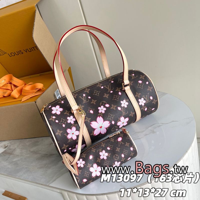 頂級高仿LV【163C01 芯片版】 款號: M13097 原單加強版【獨傢實拍背景圖】本款 Papillon 手袋以 Monogram 塗層帆佈和皮革飾邊塑造橫向圓柱構型,並通過金屬件巧妙銜接其袖珍版本。路易威登 x 村上隆復刻系列的 Cherry Blossom 圖案流露明麗氣息,鉚釘肩帶彰顯不羈型格。11 x 13 x 27 厘米(高 x 寬 x 長度)Q1290