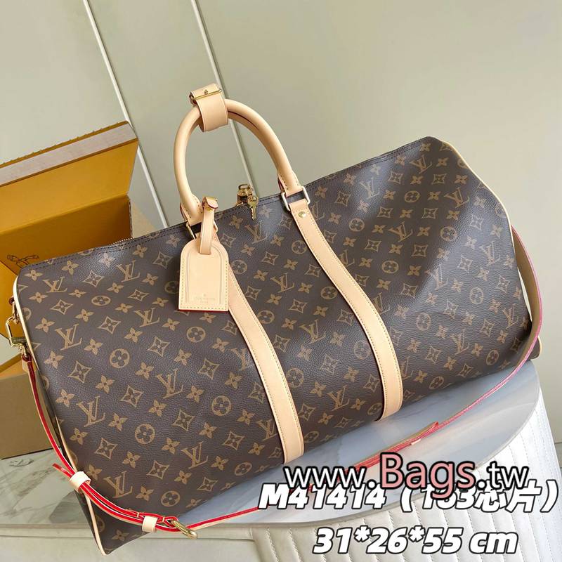 A貨LV【163C01芯片版】(55cm) 款號: M41414(55cm) 原單加強版【獨傢實拍背景圖】本款 Keepall Bandoulière 55 旅行袋取材 Monogram Eclipse 帆佈,以明麗側帶和頂部手柄註入動感氣息。緊湊構型搭配織物內襯和拉鏈口袋,實現便捷隨行體驗。可拆卸並調節的肩帶提供肩背或斜挎選擇。31 × 26 × 55 厘米(高 x 寬 x 長度)Q1690