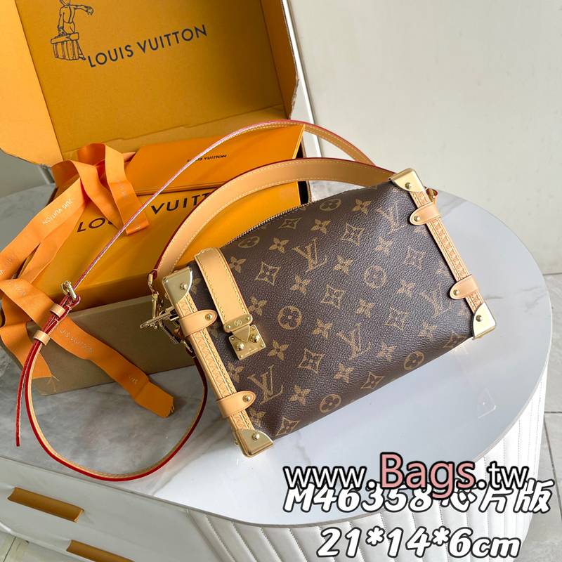 LV【變碼芯片版】 款號: M46358 原單加強版【獨傢實拍背景圖】 Nicolas Ghesquière 重復探尋路易威登的制箱傳承,創作此款 Side Trunk 小號手袋。Monogram 帆佈結合皮革飾邊,皮革拉鏈頭創意銜接標志性 S-lock 鎖扣,與加固金屬包角共同匯聚視線。寬手柄和皮革細肩帶均可拆卸。Monogram 塗層帆佈一牛皮革飾邊一微纖維內襯一金屬件一拉鏈開合配有 S-lock 鎖扣一肩帶:可拆卸,可調節!!型號:M46358;尺寸:21x14x6CMQ1490