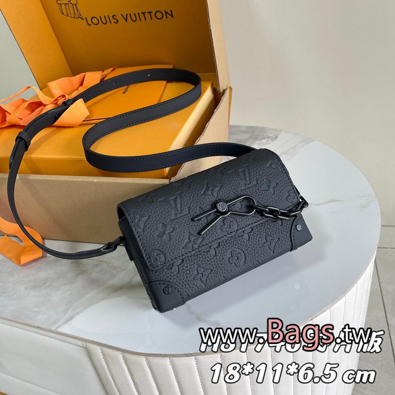 高仿LV【163C01芯片版】原單加強版 M81746壓花【質量全面升級】獨傢實拍背景圖、,柔軟的 Monogram Taurillon 皮革 與Steamer 風格鏈條等經典元素相得益彰。配有可調節肩帶,便於背攜。拉鏈隔層收納空間充裕,搭配前袋翻蓋和磁鐵鎖扣,確保物品安全無虞。尺寸18x 11x 6.5cmQ1250
