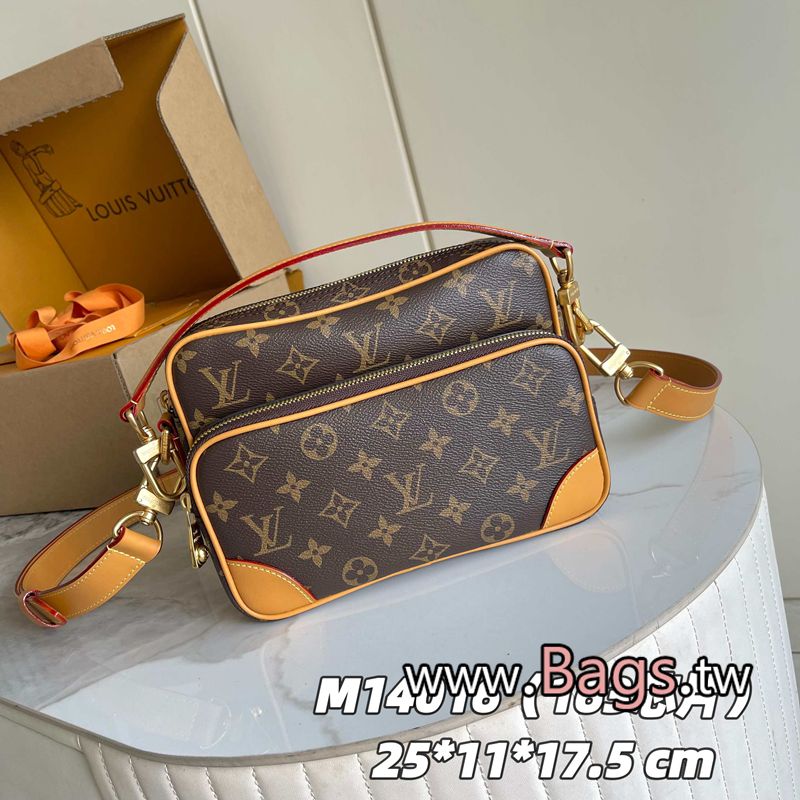 LV【163C01 芯片版】款號: M14016 原單加強版【獨傢實拍背景圖】✨Nil 手袋時尚小巧,屬於 Monogram Archive 系列,以 Monogram 塗層帆佈制作包身,並飾以牛皮革鑲邊。手袋融合復古細節與現代雅致格調,包角經過加固,並搭配 Pharrell Williams 新近推出的珍珠拉鏈。可拆卸手柄與背帶靈活便攜。17.5 x 11 x 25 厘米(高 x 寬 x 長度)Q1450