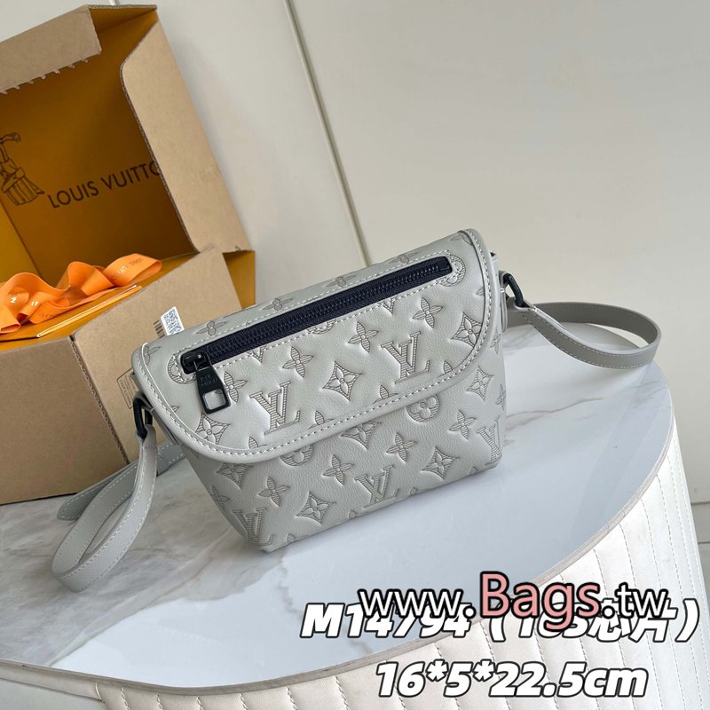 最頂級高仿LV【163C01 芯片版】 款號: M14794, 原單加強版【獨傢實拍背景圖】✨本款 Pulse 迷你手袋為 Monogram Shadow 壓紋牛皮革浸染摩登新色,以柔軟質感升級考究構型和舒適背攜體驗。金屬件與翻蓋口袋的拉鏈巧妙烘托包身圖案,可調節肩帶提供肩背和斜挎選擇。16 x 5 x 22.5 厘米 (高 x 寬 x 長度)Q1250