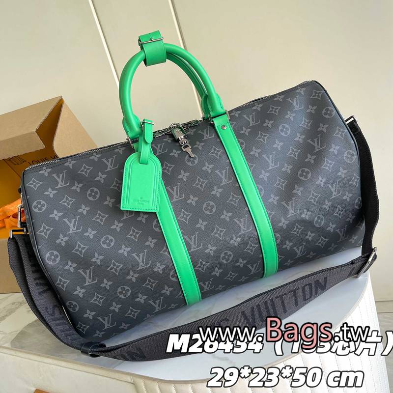 一比一LV路易威登【163C01芯片版】(45cm) 款號: M26434 綠色 鋼釘 原單加強版【獨傢實拍背景圖】本款 Keepall Bandoulière 45 旅行袋取材 Monogram Eclipse 帆佈,以明麗側帶和頂部手柄註入動感氣息。緊湊構型搭配織物內襯和拉鏈口袋,實現便捷隨行體驗。可拆卸並調節的肩帶提供肩背或斜挎選擇。27 × 20 × 45 厘米(高 x 寬 x 長度)Q1490