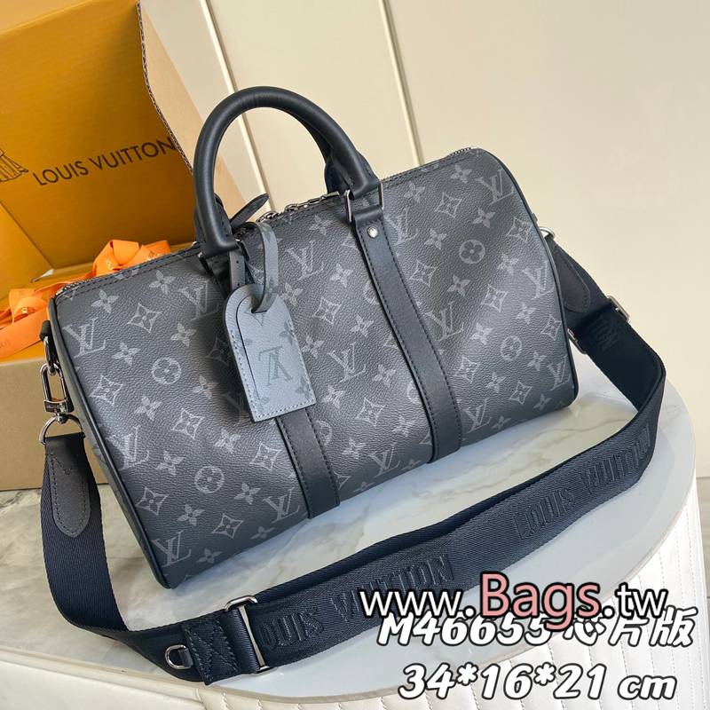 a貨高仿LV【變碼芯片版】款號: M46655 原單加強版【獨傢實拍背景圖】本款 Keepall Bandoulière 35 手袋借 Monogram Eclipse 塗層帆佈傳遞內斂氣度。皮革頂部手柄、側帶和金屬件彰顯經典傳承,可拆卸並調節的肩帶實現舒適肩背。Monogram Eclipse 塗層帆佈一牛皮革飾邊一織物內襯一金屬件一拉鏈開合一可拆卸名牌一雙內貼袋一肩帶:可拆卸,可調節!!型號:M46655;尺寸:34x21x16CMQ1490