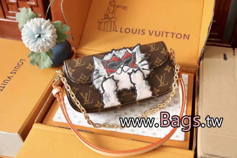 高仿LVM15148 貓 LV Travels With Grace Coddington 系列推出此款Wallet On Chain Ivy 手袋,為Monogram 帆佈呈現手繪貓咪插畫,娓娓道來藝術傢的愛貓情懷。可拆卸金屬鏈條解鎖多種背攜方式,內設貼袋、拉鏈袋和卡片夾層。23.5 x 12 x4.3厘米(長度x高x寬) Q890